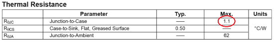 Látható tehát hogy egy sokkal kisebb fizikai méretű és kisebb hűtőfelülettel rendelkező mezei TO-220 tokos IRL-540 hővezető képessége is 26%-al jobb mint a 2N3055-nek. Belinkeltem még egy TO-247 tokozású BD249 tranziztort is, melynek még kisebb természetesen a hővezetési ellenállása. Direkt egy bipoláris tranzisztor adatlapját választottam harmadiknak, de FET-ek közt találkozhatunk 0,5-0,45°C/W, sőt ha nagyon vadászunk akkor 0,3-0,25°C/W körüli termikus ellenállású TO-247 tokos példányokkal is.