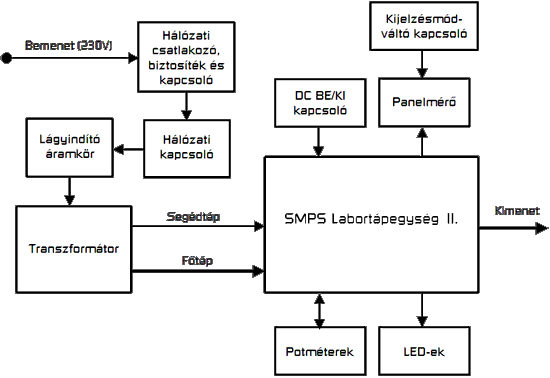 Az SMPS Labortápegység II áramköre mivel nem közvetlen a 230V-os hálózatról működik, ezért szükség van egy transzformátorra. Akinek van hozzá affinitása az tehet elé egy rezonáns kapcsolóüzemű tápot is, ez ügyben javaslom Skori barátom weboldalát felkeresni! A labortápot én egy 50Hz-es toroid transzformátorról táplálom. Ezt meg kell külön tekertetni mert biztos hogy nincs kereskedelmi forgalomban pontosan olyan ami a labortápunkhoz kell. A transzformátornak a maximális 50V és 10A eléréséhez 500-600VA-esnek kell lennie egy 55-60V-os nagyáramú tekerccsel és kell hogy legyen rajta még egy 8V-os (7-8V) szekunder-tekercs is a segédtápnak, ennek mindössze 200-300mA terhelhetőségűnek kell csak lennie. A transzformátort Kléh Györgynél tekertettem, az ő telefonszáma: 061/291-57-46.