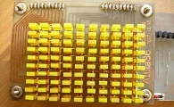 A ledeknek 2mm*5mm-es szögleteseknek kell lenniük, ahogy a képeken is látszik. A kör keresztmetszetű ledek nem igazán férnek el a panelon egymás mellett, illetve szvsz a szögletesekkel jobban is néz ki az áramkör. Érdemes nem 100db ledet venni a boltban hanem mondjuk 10db-al többet, mivel biztos hogy egy pár hibás közülük, vagy a fénye nagyon eltér a többiétől. Nekem sárga színű ledből volt itthon sok, ezért ezeket használtam fel. Azonban bátran lehet variálni a színeket, például alsó 1.-5. sor zöld, 6. és 7. sor sárga, 8.-10. led-sor pedig piros ledekből is állhat.