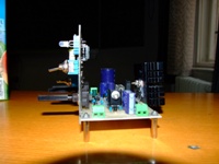 A melegedő két teljesítmény-tranzisztor a panel hátulsó szélén van, ezekre hőtőbordát kell szerelni. A harmadik melegedő alkatrész a 7805, de erre egy kis hűtőzászló is elég.