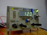 A függőleges panel beültetése előtt digimultival sípoltassuk le az ICL7107 és a kijelzők alatt lévő fólia-szakaszokat, hogy nincs-e köztük zárlat vagy szakadás. Ezután az átkötésekkel kezdjük a beültetést. Ezután forrasszuk be a kijelzők tokját, majd az ICL7107 tokját a panelba. A beültetést az ellenállásokkal és kondenzátorokkal folytassuk, és végül kerüljön a panelba a két kapcsoló. A ledeket a paneltól kb egy centire ültessük, hogy az előlapig elérjenek.